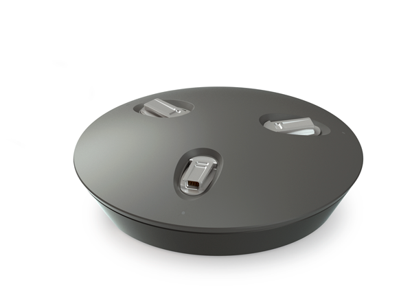 Das Ladegerät dient dem Wiederaufladen der Akkus. Dabei können bis zu drei Akkus gleichzeitig geladen werden.