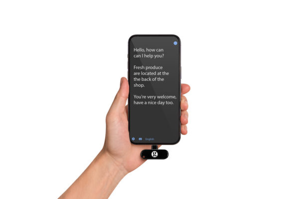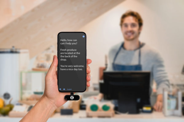 Mit Hilfe dieses neuen Geräts werden die über eine Ringschleife übertragenen Ansagen auf das Gerät Ihrer Wahl, ein Smartphone oder Tablet, geschrieben, auf dem Sie zuvor eine App zur Umwandlung von Sprache in Text installiert haben.