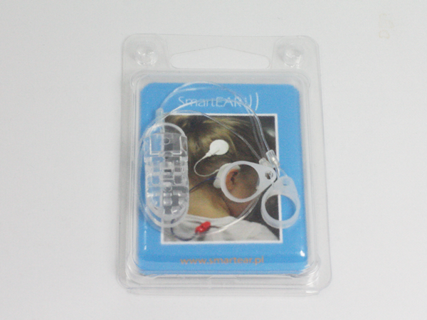 Das Doppel-Halteband SmartEar besteht aus einer 0,6 mm dicken Silikonschnur, einem Kunststoff-Befestigungsklipp und zwei Silikonendteilen. Der Klipp ist klein und hält nach dem Befestigen sehr fest an der Kleidung. Das Halteband ist subtil und nicht auffallend.