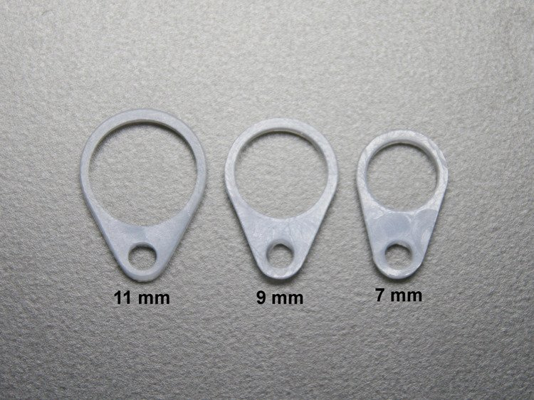 Das Halteband verfügt über Silikonendteile für ein Hörgerät oder einen Audioprozessor, die in drei Größen erhältlich sind: 7 mm, 9 mm und 11 mm. Man sollte die Größe 11 mm für Audioprozessoren, 9 mm für Hörgeräte und 7 mm für kleinere Hörgeräte wählen.