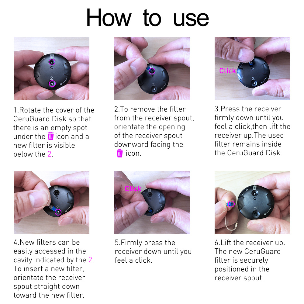 The filters are supplied in a special rotating case that makes it easy to precisely remove the old filter and insert a new one.