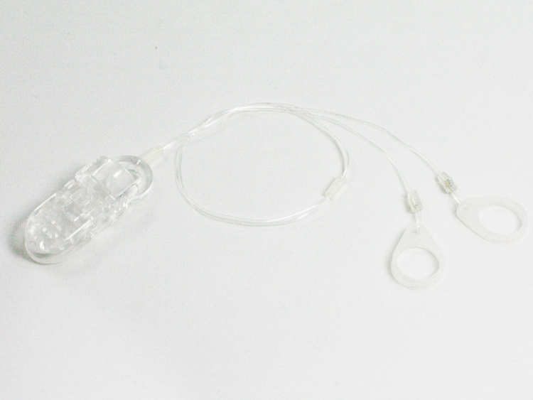 The hook, colloquially a clip or lanyard for securing hearing aids and audio processors, helps people using hearing devices in their daily lives. The SmartEar double hook is made of 0.6mm thick silicone line, a plastic clip and a silicone tip. The clip is small and, when fastened, holds firmly to clothing. The hook is subtle and unobtrusive.