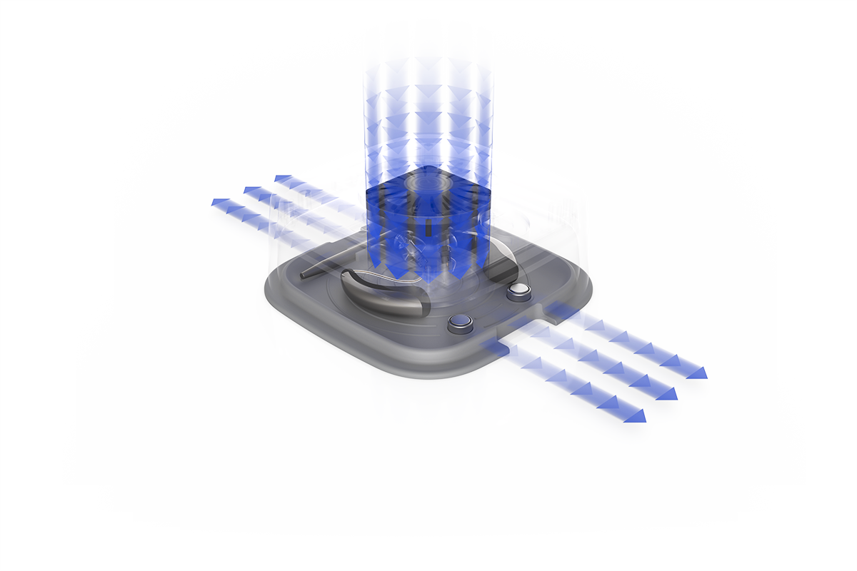 Dry-turbo cd 2® assure un séchage parfait grâce au turbo-ventilateur après seulement 30 minutes. Pendant ce temps, 2,4 mètres cubes d'air avec une pression de 28 Pa circulent autour des appareils auditifs. Avec seulement 1 W, le dispositif est plus économe en énergie que les autres dispositifs de ce type. Le séchage est ainsi beaucoup plus efficace et rapide qu'avec les dessicateurs à convection traditionnels, et les appareils auditifs ne subissent pas de stress thermique. Les piles des appareils auditifs ne doivent pas nécessairement être retirées.