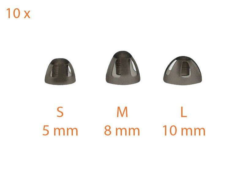 Las almohadillas / cúpulas están disponibles en distintos tamaños para poder adaptarse a casi cualquier conducto auditivo:
