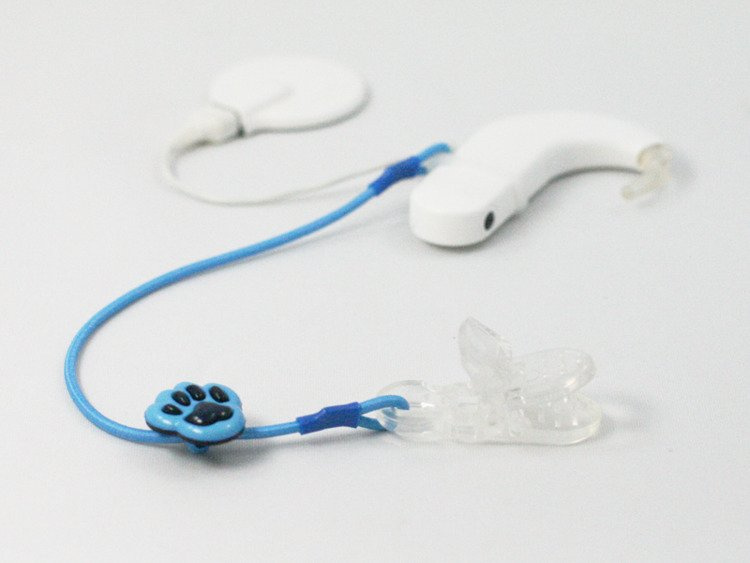 • Gancho único con adorno para audífono o procesador de voz (sistema de implante coclear). Muy recomendado para niños. Evita daño o pérdida.